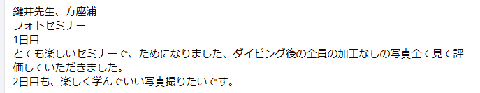 方座浦の海を愛するフォト派ダイバーの方々の色々なお話が聞けてとても勉強になりました!
