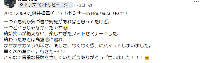 12/5-6 鍵井靖章氏フォトセミナー in方座浦