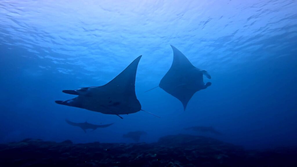 巨大なマンタが優雅に泳ぐ姿を間近で見ることができ、その迫力は圧巻です。