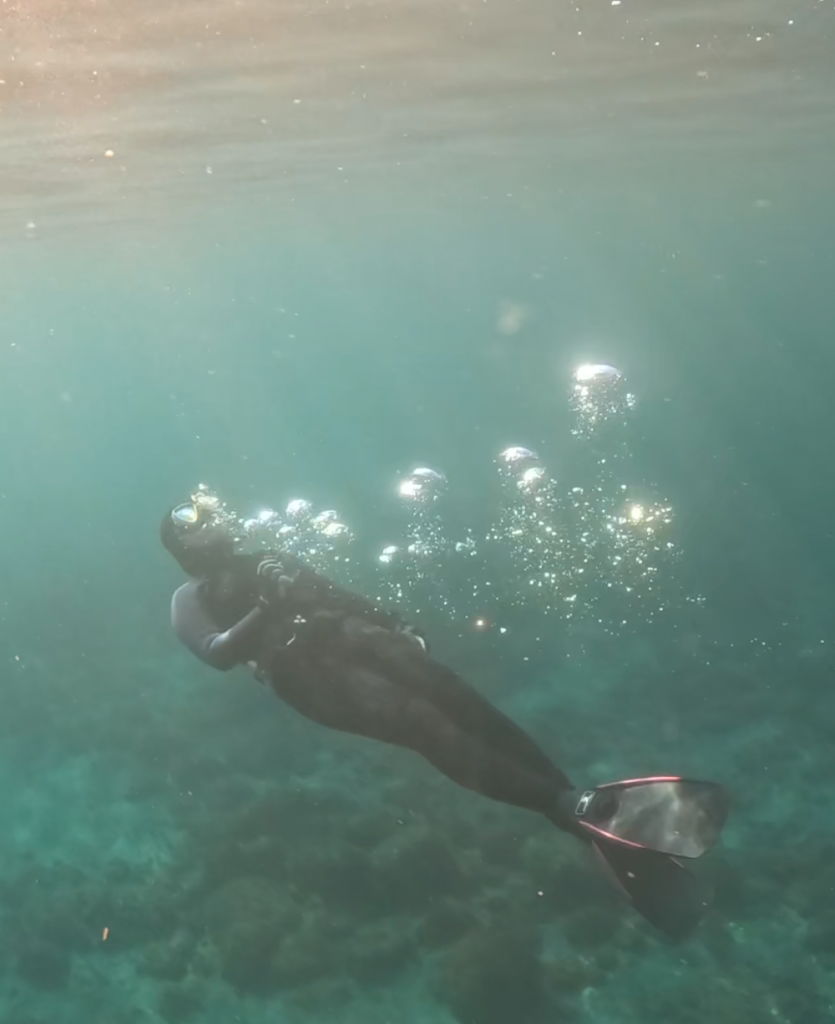 バディーで交互潜水、耳の調子もチェックしつつ水との一体感を感じながら