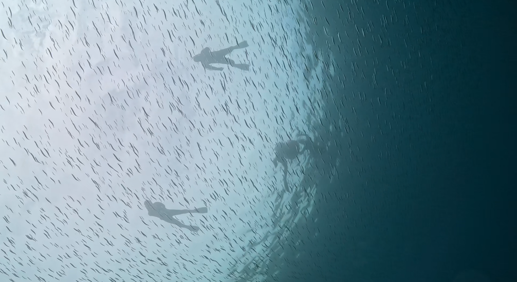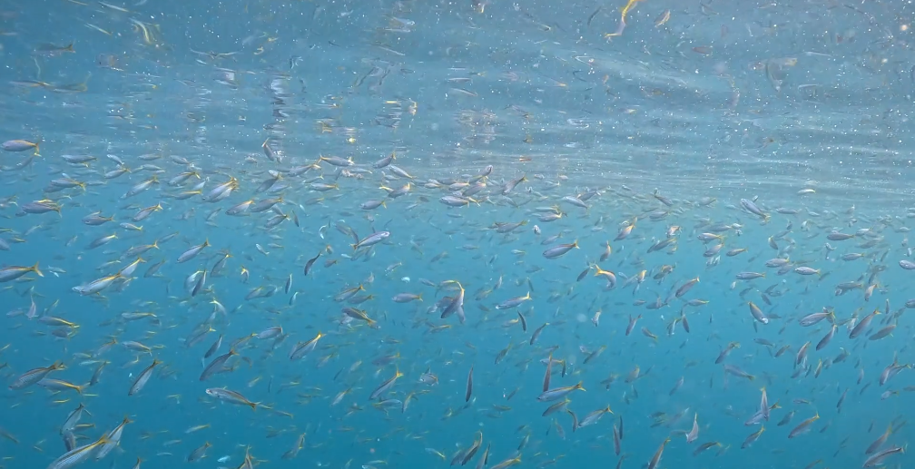 きびなごの群れでみんなが見えなくなっちゃう!