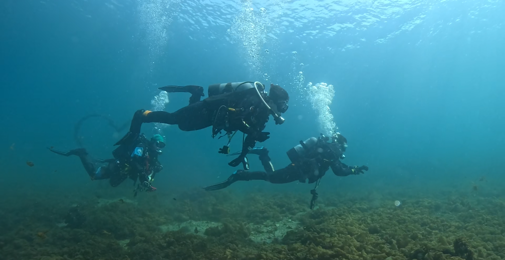 ディープダイビング講習中のダイバーさんも深場から上がってきました。