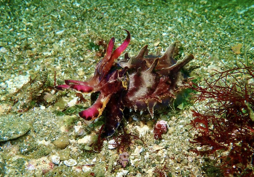 砂地には、クロモウミウシがあちらこちら🎶